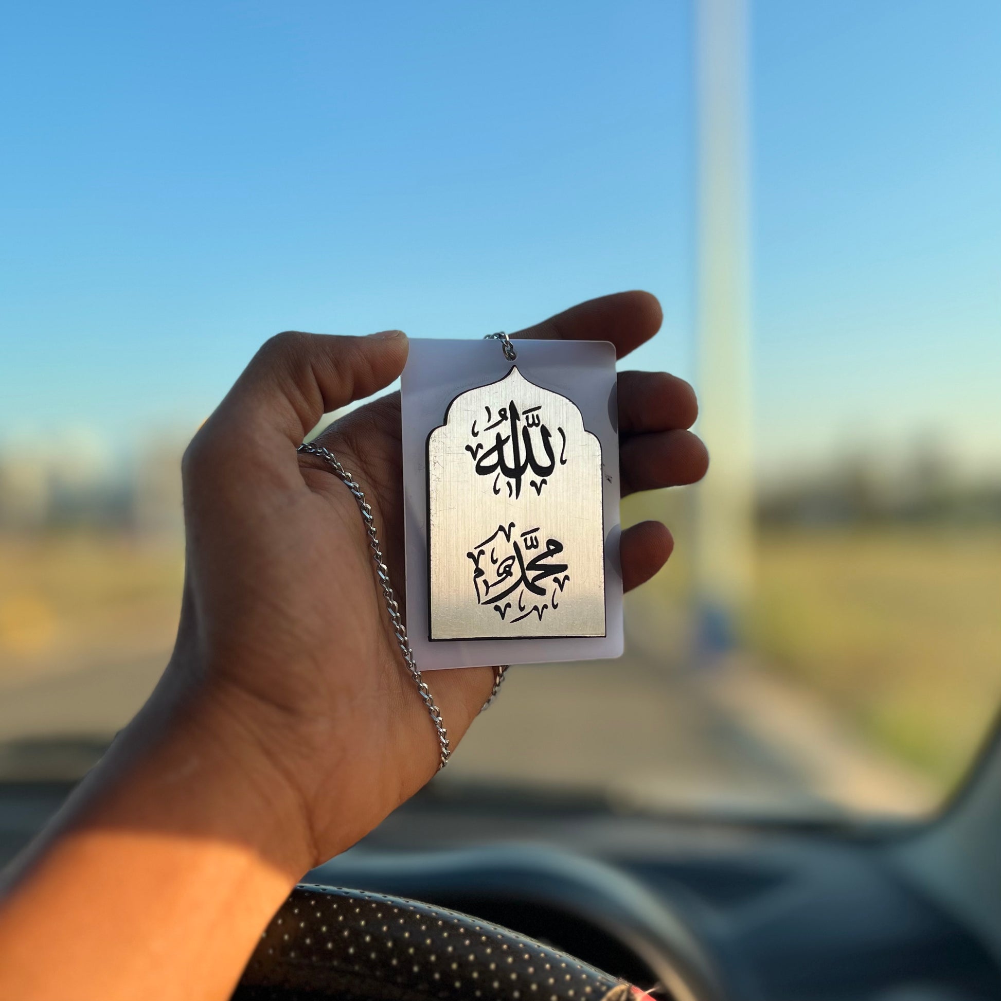 Embrace faith and elegance with this beautifully engraved Allah & Muhammad (S.A.W) car hanging! 🚗✨