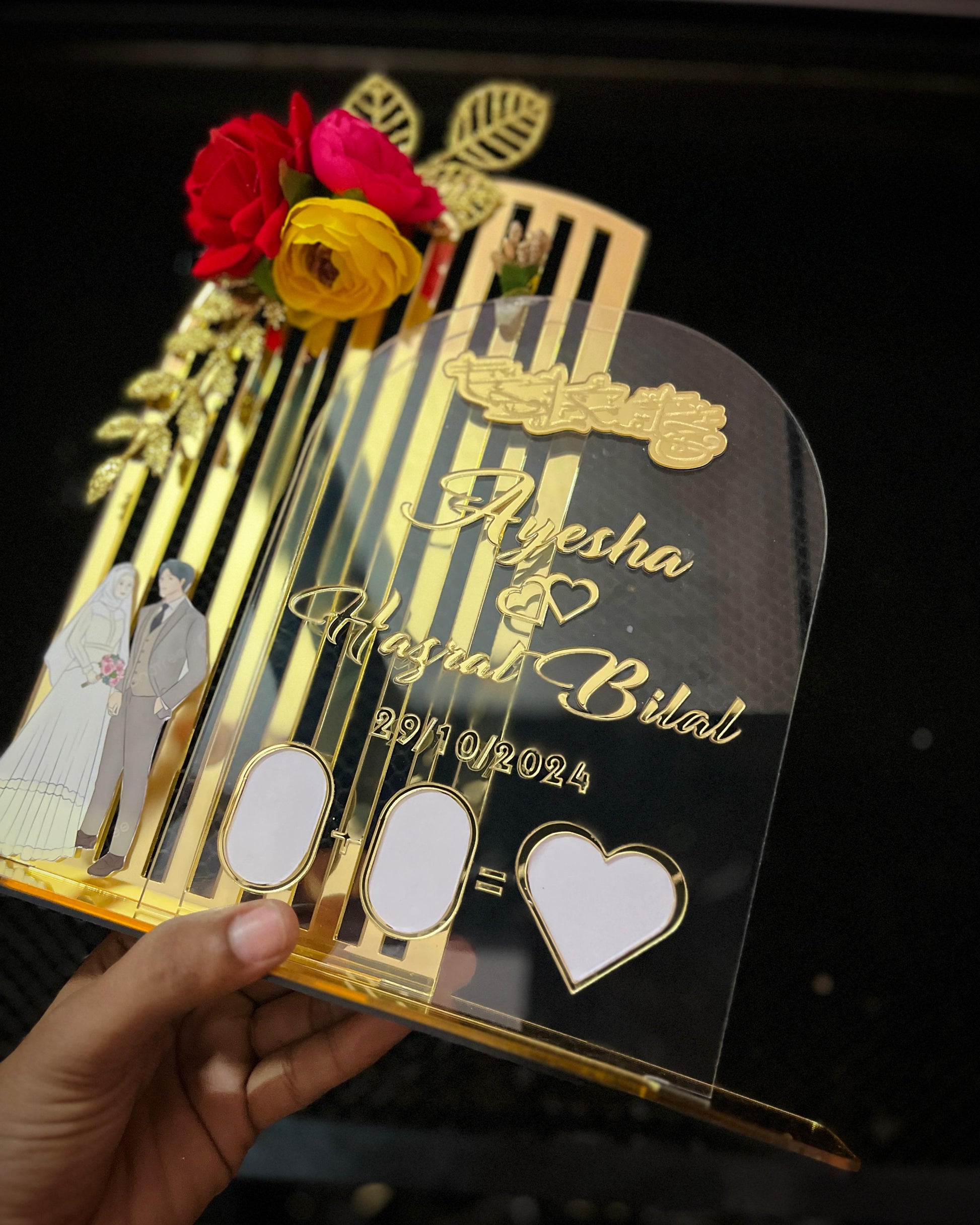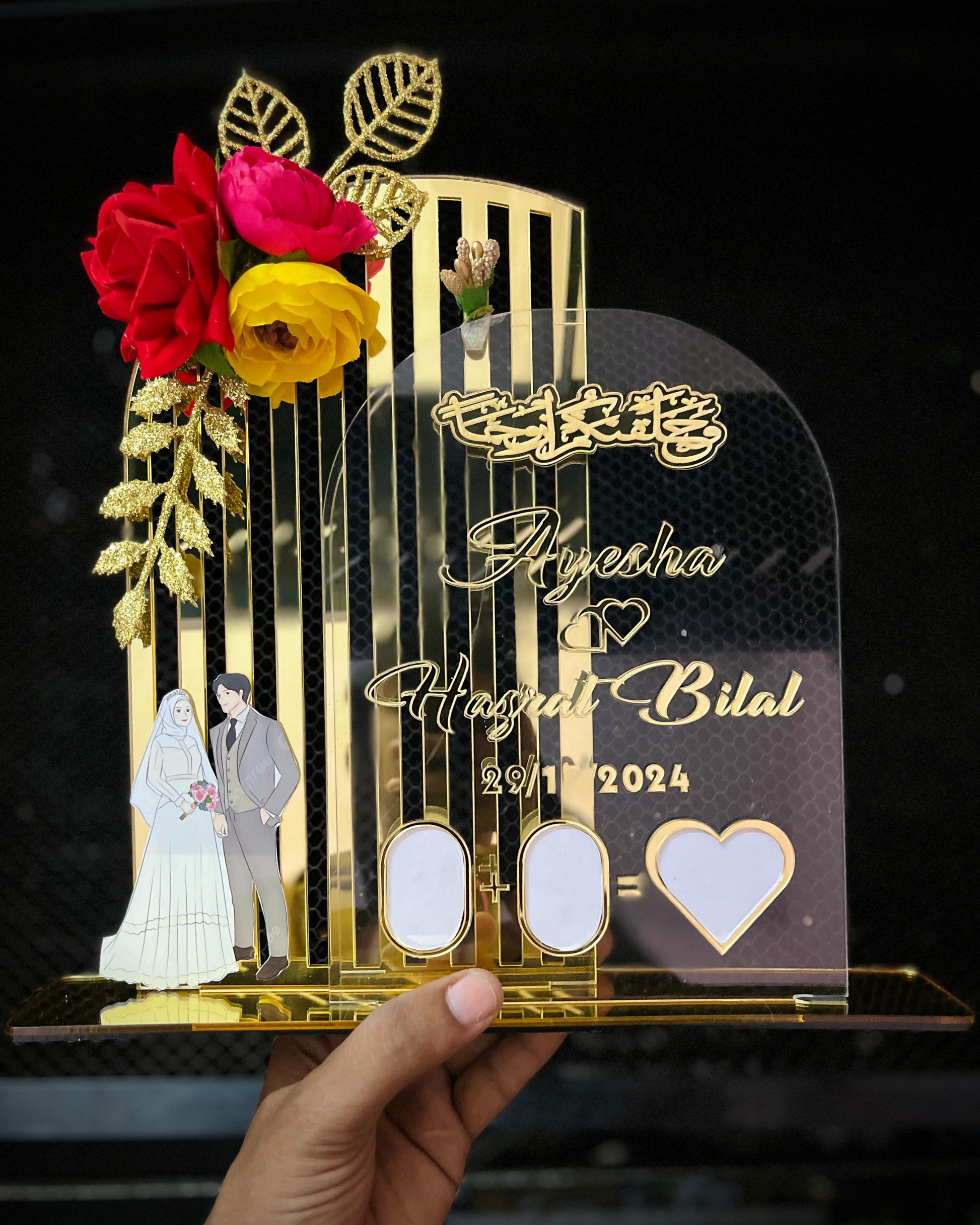 ✅ Elegant & Timeless Design – A beautifully crafted Nikah thumb plate with a transparent acrylic base and gold accents.